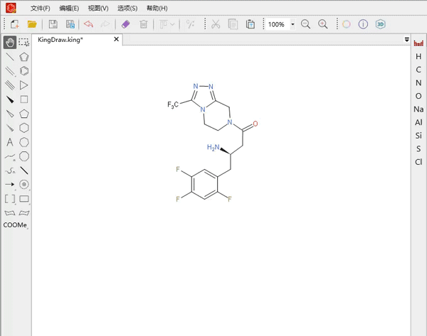 将鼠标移至键的端点或元素上,点击相应元素快捷键,可直接在结构式中替换元素;将鼠标移至化学键上,点击相应键的快捷键,可以直接替换当前化学键。